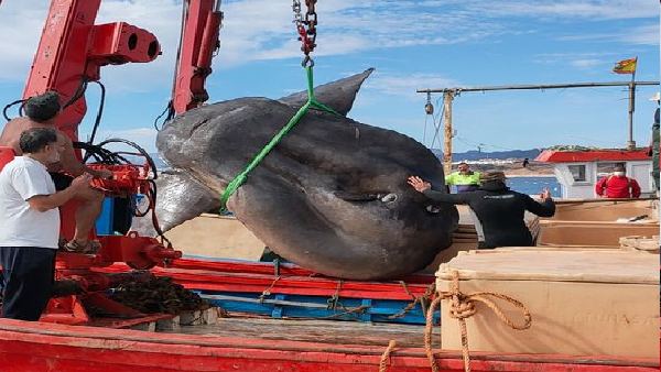 भूमध्यसागरीय तट पर इस इलाके के लिए रिकॉर्ड आकार की माना जाने वाली विशालकाय सनफिश क्रेन के साथ पानी से ऊपर खींचीं गई थी और इसकी स्टडी की गई। समुद्री जीवविज्ञानी एनरिक ओस्टेल ने न्यूज एजेंसी रायटर को बताया कि इसके विशालता के आधार पर इसका वजन लगभग 2 टन (4,409 पाउंड) होना चाहिए। उनके मुताबिक सनफिश के लिए अलग-अलग जहाजों पर दो क्रेन का इस्तेमाल किया गया था। मछली की लंबाई 10.5 फीट और चौड़ाई 9.5 फीट बताया जा रही थी।