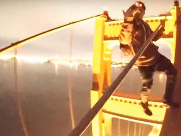 दरअसल, सैनफ्रांसिस्को में 746 फीट ऊंचे गोल्डन गेट ब्रिज में दो टीनएजर्स बच्चे ऐसे उछलकूद कर रहे हैं कि पूछिए मत। ये दोनों बच्चे इस ब्रिज के टॉप केबिन्स पर ऐसे चढ़ रहे हैं जैसे किसी हाइवे की सुनसान जगह पर वॉक कर रहे हों। बात सिर्फ घूमने पिफरने तक ही सीमित नहीं है। ये दोनों ब्रिज की ऊंचाई पर झूम रहे हैं और एक रॉकस्टार की तरह परफॉर्मेंस दे रहे हैं। ऐसी परफॉर्मेंस आपने अब तक तो किसी स्टंटमैन की ही देखी होगी। लेकिन जनाब यहां तो इनको अपने जान की कोई परवाह ही नहीं है। ये बच्चे लगातार दस मिनट तक इस ब्रिज पर रहे और केबल्स की मदद से बहुत देर तक उसपर चलते फिरते और घूमते रहे।