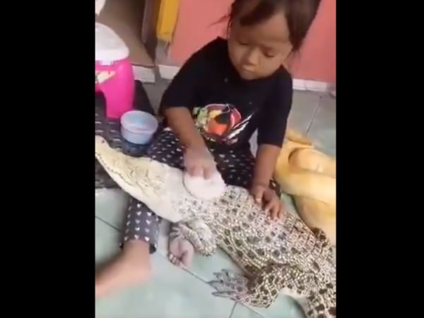 एक अन्य वीडियो में वह मगरमच्छ को ब्रश करा रही है। बिल्कुल उस तरह जैसे उसकी मां उसे ब्रश कराती होगी। मगरमच्छ ने भी अपने सेवा के लिए खुद को पुरी तरह मानो बच्ची को समर्पित कर दिया हो। नजारा कभी प्यारा लग रहा है तो कभी डरावना।