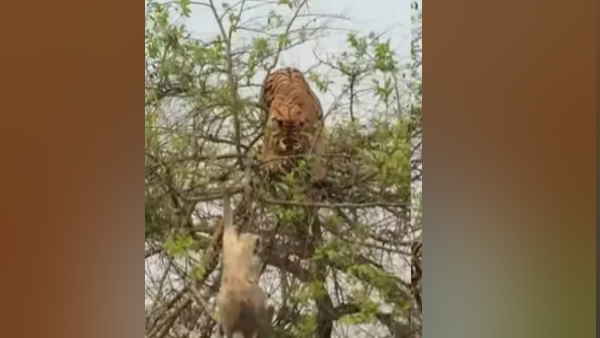 Video: बंदर ने अपनी चालाकी से किया बाघ को चारों खाने चित्त, शिकार के लिए पेड़ पर चढ़ गया था टाइगर