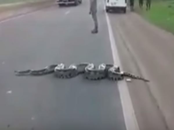 अचानक सड़क के बीचों-बीच आया विशालकाय एनाकोंडा, Video देखकर आपके भी उड़ जाएंगे होश