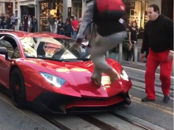 जब 3 करोड़ की Lamborghini के उपर चढ़ गया शख्स, थम गया मालिक का दिल