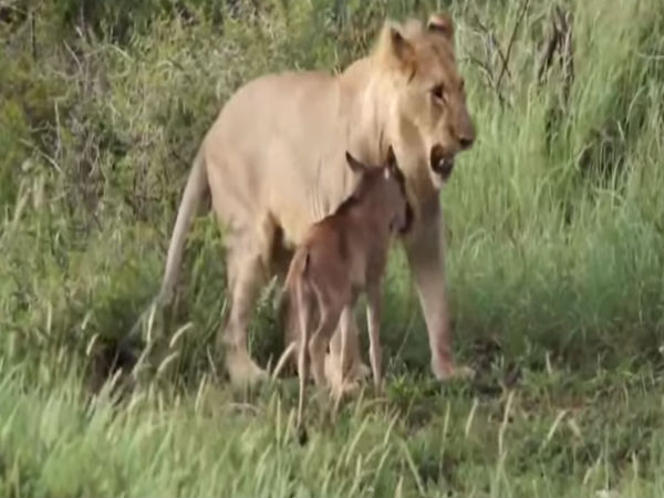 Video: हिरण के बच्चे को देख जाग गई भूखे शेर की ममता,दे दी नई जिंदगी
