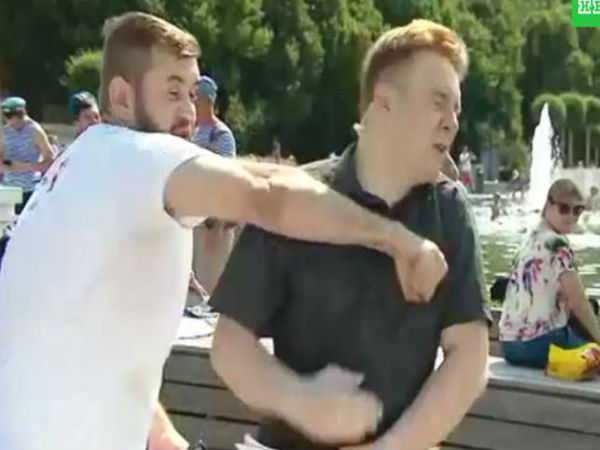 नई दिल्ली। टीवी पर दिखने के लिए लोग कुछ भी करने को तैयार हो जाते हैं, लेकिन रूस में एक शख्स ने टीवी पर आने के लिए जो किया उसे देखकर आपको गुस्सा आएगा। घटना प्रो क्रेमलिन टीवी के रिपोर्टर के साथ हुई। जहां जबरदस्ती एक शख्स कैमरे के प्रेम में घुसने की कोशिश कर रहा था, जब रिपोर्टर ने उन्हें रोकने की कोशिश की तो उस ने उसे लाइव शो में पंच मार दिया।