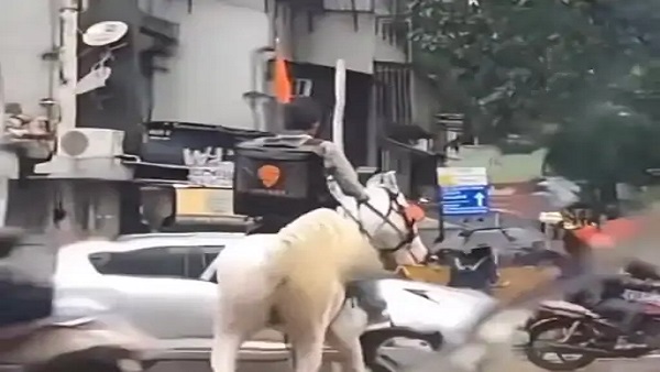 Swiggy की शाही डिलीवरी, मुंबई की बारिश में डिलीवरी ब्वॉय ने घोड़े पर सवार होकर की फूड डिलीवरी, देखें Video