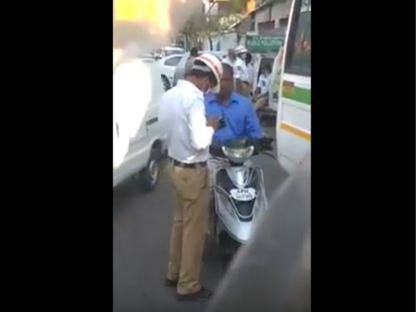 हैदराबाद के हिमायतनगर में ट्रैफिक पुलिस को जो चेहरा सामने आया उसने सरकार के तमाम कोशिशों पर पानी फेर दिया। यहां ड्यूटी पर तैनात पुलिसकर्मी ने स्कूटी सवार शख्स ने रिश्वत ली और उसे जाने दिया। वीडियो वहां मौजूद सिद्धार्थ वर्मूला नाम के शख्स ने अपनो मोबाइल फोन से शूट किया और उसे हैदराबाद ट्रैफिक पुलिस के फेसबुक पेज पर डाल दिया। वीडियो में देखा जा सकता है ड्यूटी पर तैनात ट्रैफिक पुलिस का जवान एक स्कूटी सवार को रोकता है और उससे पेपर दिखाने की बात करता है। लेकिन थोड़ी देर तक दोनों के बीच कुछ बातचीत होती है और फिर स्कूटी सवार उसे कुछ रुपए देता है। पैसे जेब में रखते ही वो उसे वहां से जाने देता है।