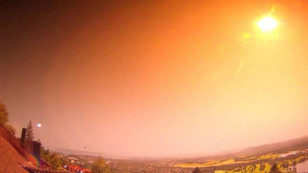 नॉर्वे में एक चकित करने वाली आकाशीय घटना हुई। देर रात आसमान पीले रंग की तेज रौशनी से जगमगा उठा। तेज आवाज होने लगी। धमाके की आवाज के साथ एक भारी भरकम करीब 10 किलो के वजन का उल्कापिंड धरती पर आ गिरा। उल्कापिंड (Meteorite) पास के जंगल में गिरा, हालांकि इस घटना में किसी के घायल होने की सूचना नहीं मिली है। ना ही किसी तरह के नुकसान की कोई खबर आई है। लोगों ने आसमान से गिरते आसमान के गोले को देखते ही डर के चलते इमरजेंसी नंबर पर फोन करना शुरू कर दिया।