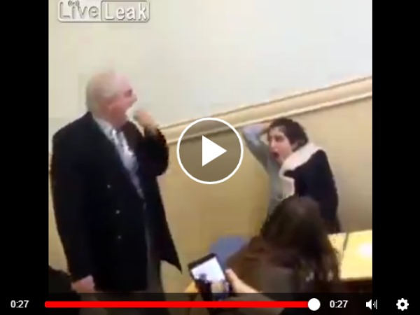 इस पूरे वीडियो को देखने से पता चलता है कि क्लास में बैठे दूसरे छात्र इस घटना को अपने मोबाइल में वीडियो बनाते दिख रहे हैं। 27 सेकेंड के इस वीडियो को LiveLeak पर शेयर किया गया है। आपको बता दें कि यह वीडियो करीब एक साल पुराना है, पर इसे दोबारा सोशल मीडिया पर शेयर किया गया है। आपको बताते चले कि इस बात की पुष्टि नहीं हो पाई है कि ये शिक्षक की तरफ से एक योजना के तहत बनाया गया वीडियो है, यह फिर अचानक ही ऐसा हो गया।
