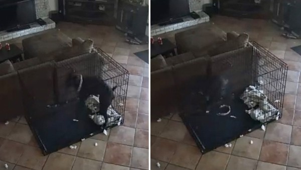 48 सेकेंड के वीडियो में आप देख सकते हैं कि एक कमरे में दो कुत्ते हैं। दोनों को पिंजड़े में बंद किया गया है। जिसमें भूरा वाला कुत्ता तो लेटा है, जबकि काला वाला खड़ा रहता है। अचानक से दोनों कुत्ते तेजी से भौंकने लगते हैं। उस वक्त ऐसा लग रहा, जैसे कोई अजनबी शख्स उनके सामने हो, लेकिन पूरे कमरे में उनके अलावा कोई नहीं था। 20-25 सेकेंड भौंकने के बाद दोनों चुप हो जाते हैं। भूरा वाला कुत्ता तो अपने पिंजड़े में लेटा रहता है, जबकि काला वाला खड़ा रहता है। कुछ देर बाद वहां पर जो हुआ उसे देख सब हैरान रह गए।