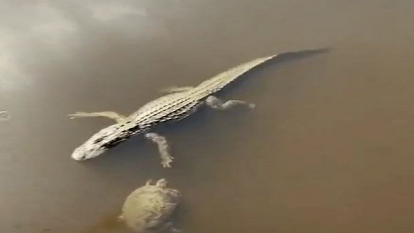 मगरमच्छ को टच कर निकल गया कछुआ