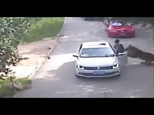 वीडियो में देखा जा सकता है कि बीजिंग के बैडलिंग वाइल्डलाइफ वर्ल्ड में गुस्से में एक महिला अपनी गाड़ी बीच सड़क पर रोक देती है और कार से बाहर निकलकर वो किसी से लड़ने लगती है। वो कार की दूसरी ओर का दरवाजा खोलती ही है कि जंगल से निकलकर एक बाघ उसपर हमला कर देता है।