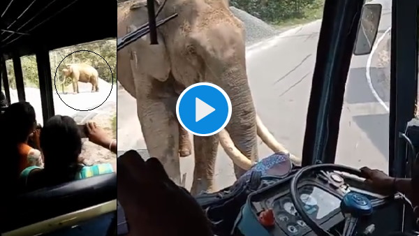 हाथी आ गया सवारियों से भरी बस के सामने, तोड़ दिया शीशा, लेकिन ड्राइवर ने सब्र ना खोया VIDEO