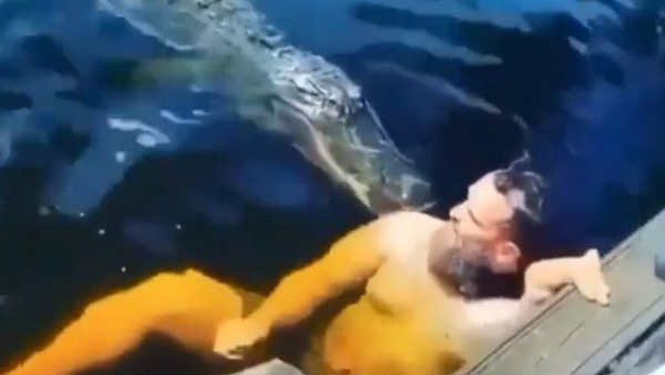 नई दिल्ली। आपने सार्क के साथ तैराकी की खबर सुनी होगी। हाल ही में एक वीडियो भी वायरल हुआ था जिसमें एक बच्ची अजगर के साथ तैरती दिख रही है। लेकिन क्या आप कभी सोच सकते हैं कि कोई मगरमच्छ के साथ स्विमिंग पुल में मस्ती करता हो। शायद नहीं। लेकिन ऐसा हुआ है और इसका परिणाम खतरनाक होते-होते रह गया।