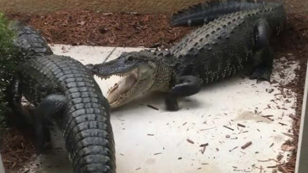 VIDEO: दरवाजे पर आई तेज आवाज, बाहर निकली महिला ने देखा गुस्से में लड़ रहे थे दो विशालकाय मगरमच्छ