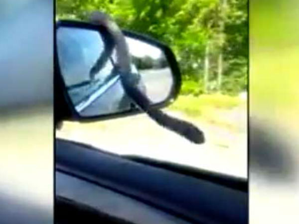 महिला कार चला रही थी कि तभी न जाने कहां से एक काले रंग का सांप साइड मिरर में आ गया। अमेरिका के उत्तरी कैरोलिना में रहने वाली केचा रॉबिन्सन अपनी पति के साथ जा रही थी कि तभी साइड मिरर पर सांप आ गया। मिरर से वो कार की खिड़की पर पहुंच गया। केचा बुरी तरह से डर गई। महिला डर के मारे घबरा गई, लेकिन वो रुकी नहीं और कार चलाती रही। केचा को अहसास हो गया था कि सांप भीतर नहीं आएगा इसलिए वो कार लचाती रही और उनके पति ने मोबाइल से ये वीडियो बनाया।