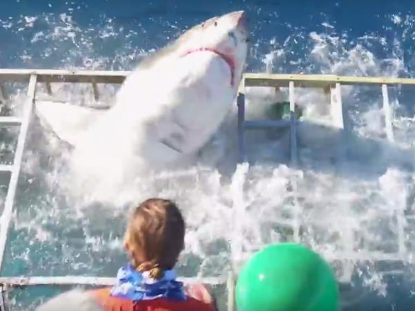 पिंजरे में घुस गई विशाल ह्वाइट शार्क