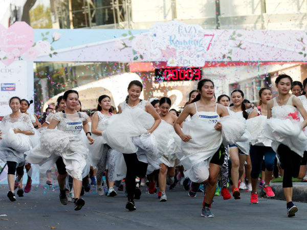 बैंकॉक की सड़कों पर 24 नवंबर को अलग नजारा देखने को मिला। सड़क पर 300 से अधिक दुल्हनें शादी के जोड़े में दौड़ लगा रही थी। सफेद गाउन में दुल्हनें रेस लगा रही थी तो उनके साथ उनके होने वाले दुल्हे भी सूट-बूट में उनके साथ दौड़ रहे थे। किसी ने तो अपनी दुल्हन को पीठे पर उठा रखा था तो किसी ने गोद में। सबमें एक दूसरे को पछाड़ने की होड़ लगी थी।
