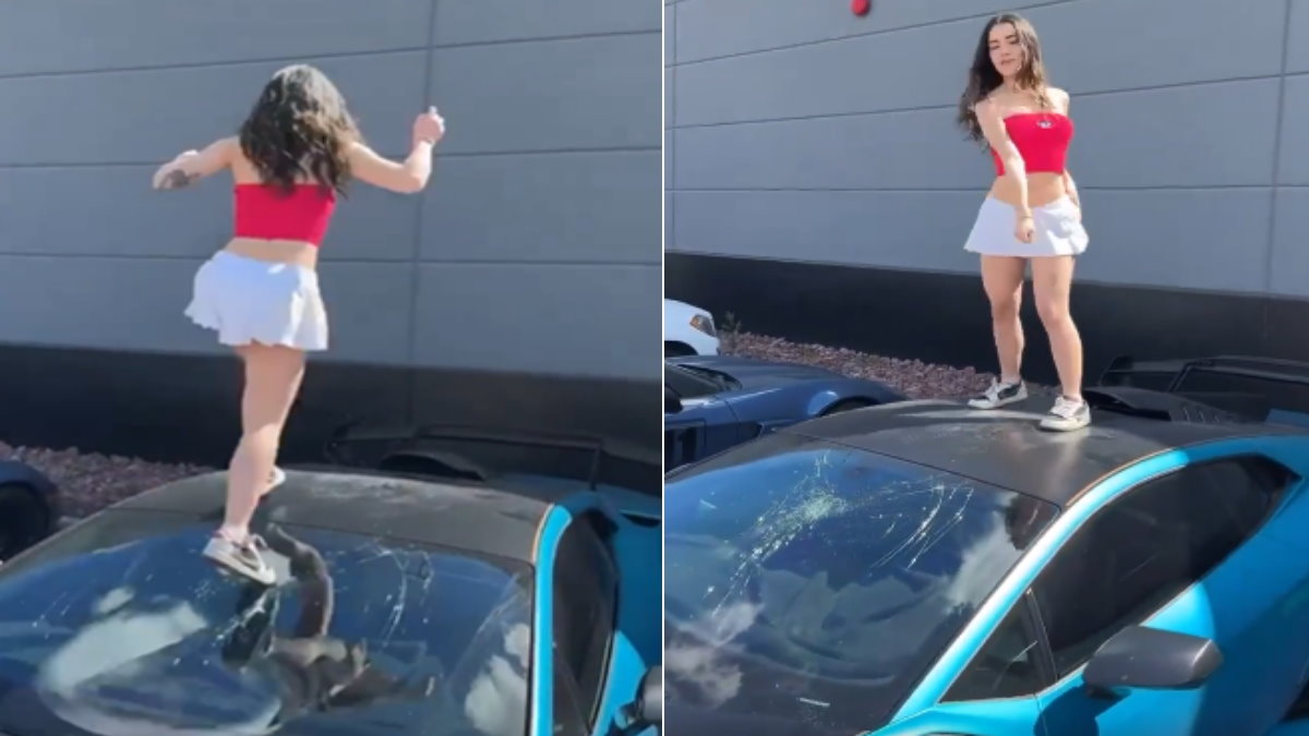 VIDEO: वायरल होने के लिए लेम्बोर्गिनी पर चढ़कर नाचने लगी लड़की, तोड़ दी करोड़ों की कार की विंडशील्ड