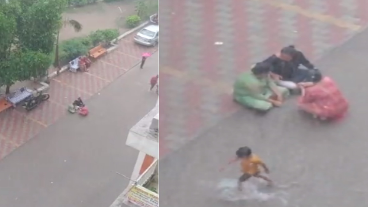तीन महिलाओं का एक वीडियो वायरल हो रहा है, जिसमें दिख रहा है कि बारिश हो रही है और महिलाएं बिना किसी चिंता परवाह के बस अपनी बातचीत में मग्न हैं। महिलाओं को इस बात से कोई परेशानी नहीं है कि काफी बारिश हो रही है। महिलाओं के सामने कुछ बच्चे भी बारिश के पानी में उछलते-कूदते नजर आ रहे हैं।