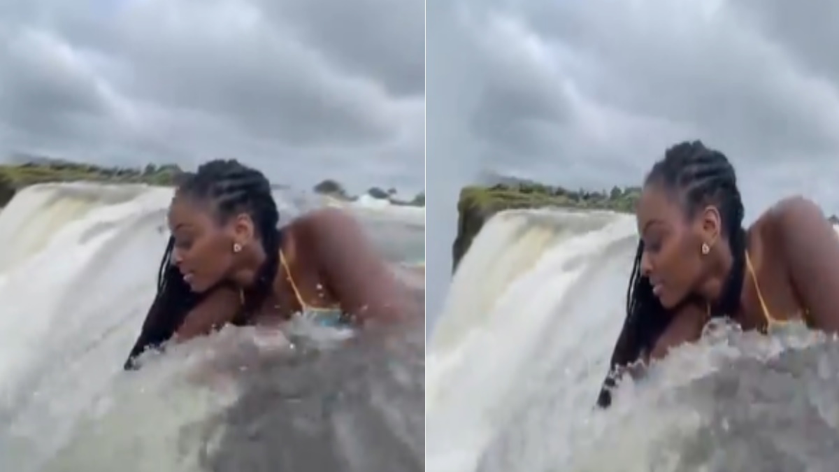 क्लिप को एक्स अकाउंट नेचर इज़ अमेज़िंग द्वारा शेयर किया गया था। क्लिप के कैप्शन में लिखा था कि अभी पता चला कि 380 फुट के झरने (डेविल्स पूल - विक्टोरिया फॉल्स) के करीब खड़ा होना एक खतरनाक बात है। इस वीडियो पर सोशल मीडिया यूजर्स के रिएक्शन्स की झड़ी लग गई है।