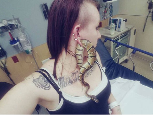 महिला का पालतू अजगर उसके कान ने छेद में बुरी तरह से फंस गया। अजगर को बचाने के लिए उसे अस्पताल में भर्ती होना पड़ा।