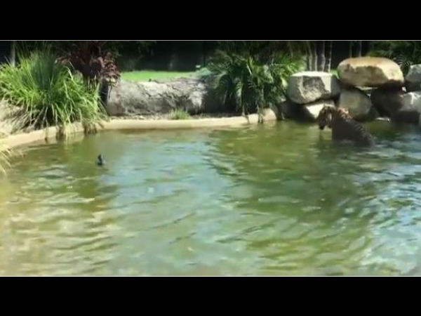 वीडियो ऑस्ट्रेलिया के वाइल्ड लाइफ पार्क का है, जहां बाघ और बत्तख की लड़ाई में बत्तख से बाघ को हरा दिया। बत्तख पानी में तैर रहा था कि तभी अचानक बाघ ने उसपर हमला कर दिया, लेकिन बत्तख ने फुर्ती से न केवल खुद को बचाया बल्कि बाघ को खूब पानी पिलाया। वीडियो में देखा जा सकता है कि कैसे बाघ बार-बार उस बत्तख का शिकार करने की कोशिश करता है, लेकिन बत्तख अपनी चालाकी से उसे खुद को पकड़ने नहीं देता।