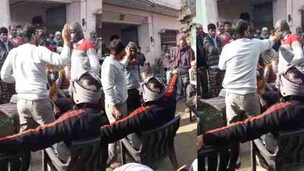 मामला बुलंदशहर जिले के सलेमपुर थाना क्षेत्र के बडौदा गांव का है। यहां रिंकू के खेत से किसी ने आलू खोदकर चोरी कर लिए थे, जिसके बाद 10 जनवरी को गांव में पंचायत बुलाई गई थी। पंचायत में दलित ग्रामीण मीनू व राकेश पर आलू चोरी करने का आरोप लगाया गया, जिसका विरोध किया तो भरी पंचायत में ग्राम प्रधान ने दोनों को चांटे मारने शुरू कर दिए। पीड़ितों का कहना है कि पिटाई के बाद उनको मुर्गा भी बनाया गया। इस दौरान वहां खड़े किसी शख्स ने पूरी घटना का वीडियो बना लिया।