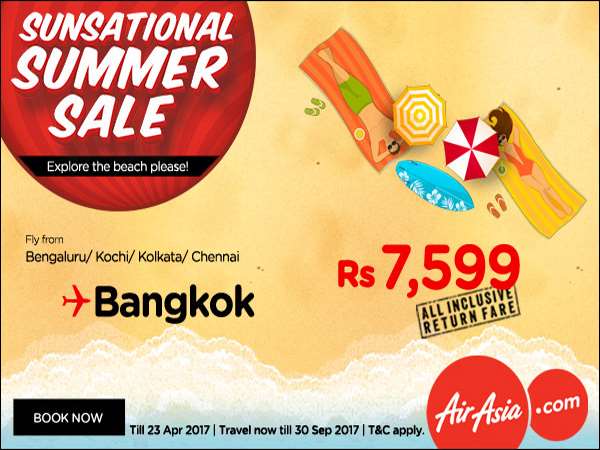 अधिकतर लोगों का मानना होता है कि एयर टिकट की बुकिंग तीन चार महीने पहले करना फायदे का सौदा होता है। ऐसे में एयर एशिया आपके लिए शानदार विकल्प हो सकता है, क्योंकि एयर एशिया समर सेल के तहत अमेंजिंग ऑफर दे रहा है। यहां टिकट उपलब्ध है और ऑफर के तहत बैंकॉक की टिकट मात्र 4499 रुपए में आपको मिल जाएगी। यानि बेहतर डील और खर्च बेहद कम।