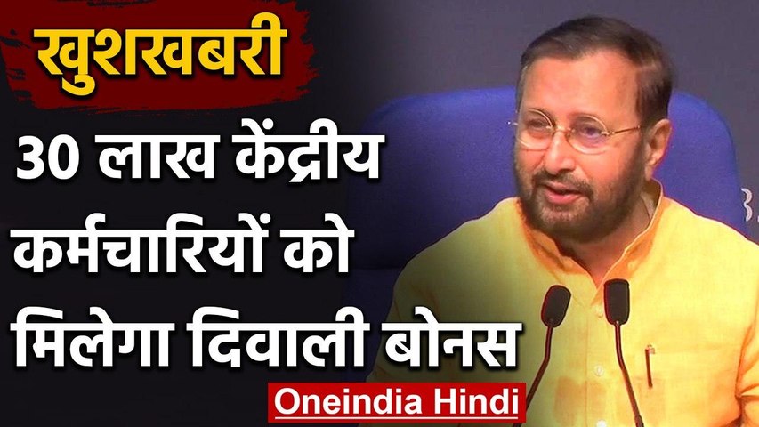 नई दिल्ली। मोदी सरकार ने दिवाली से पहले 30लाख केंद्रीय कर्मचारियों को बड़ा तोहफा दिया है। सरकार ने कर्मचारियों के लिए दिवाली से पहले बोनस की घोषणा की है। केंद्रीय मंत्री प्रकाश जावेड़कर ने आज प्रेस कॉन्फ्रेंस कर इसकी जानकारी दी। सरकार के इस ऐलान के साथ ही लाखों सरकारी कर्मचारियों के चेहरे पर मुस्कान आ गई। सरकार के फैसले के बाद विजयादशमी से पहले ही बोनस की रकम कर्मचारियों के खीते में सीधे तौर पर ट्रांसफर किए जाएंगे।
