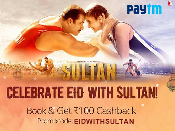 बेंगलुरु। ईद का जश्न अभी जारी है। बेंगलुरु से लेकर लखनऊ तक ईद-मिलन समारोह शुरू हो चुके हैं। और इसी त्योहार पर सलमान खान की मूवी सुल्तान आयी है। अगर आप भी सुल्तान देखने का मूड बना चुके हैं, तो अभी टिकट बुक करिये, वो भी 100 रुपए कैशबैक के साथ।