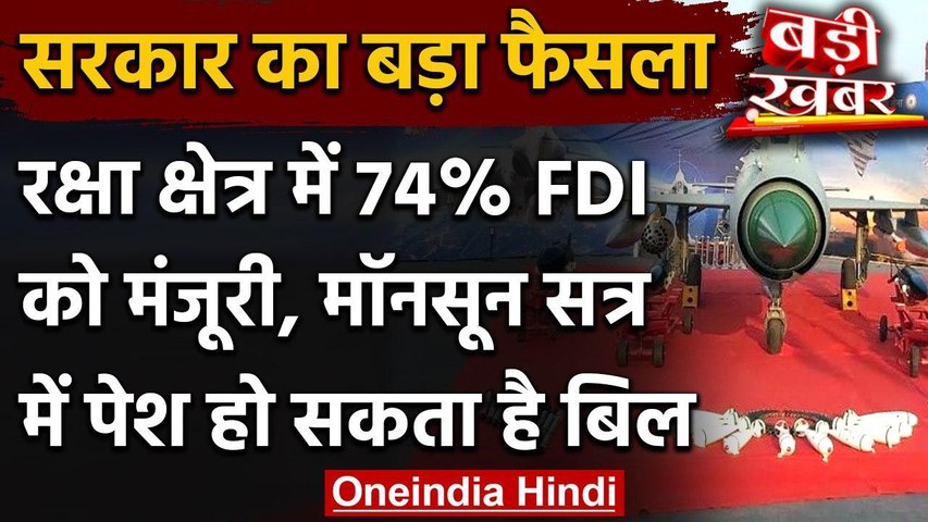 नई दिल्ली। कैबिनेट कमेटी ऑन इकोनॉमिक अफेयर्स की बैठक में डिफेंस सेक्टर में प्रत्यक्ष विदेशी निवेश (एफडीआई) नीति में बदलाव को मंजूरी दे दी। केंद्र सरकार ने रक्षा क्षेत्र में भारत को आत्मनिर्भर बनाने के लिए 74 फीसदी एफडीआई को मंजूरी दे दी है। लेकिन इसमें राष्ट्रीय सुरक्षा की शर्त जोड़ी गई है। बताया जा रहा है कि इससे जुड़ा बिल 14 सितंबर से शुरू होने जा रहे मॉनसून सत्र में पेश किया जा सकता है।