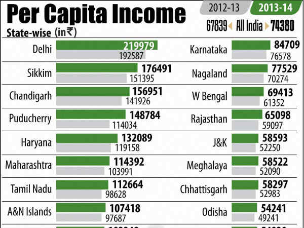 इसी तरह से सिक्किम, चंडीगढ़, पुडुचेरी, कर्नाटक, तमिलनाडु और देश के कई राज्यों में प्रति व्यक्ति आय में इजाफा हुआ है।