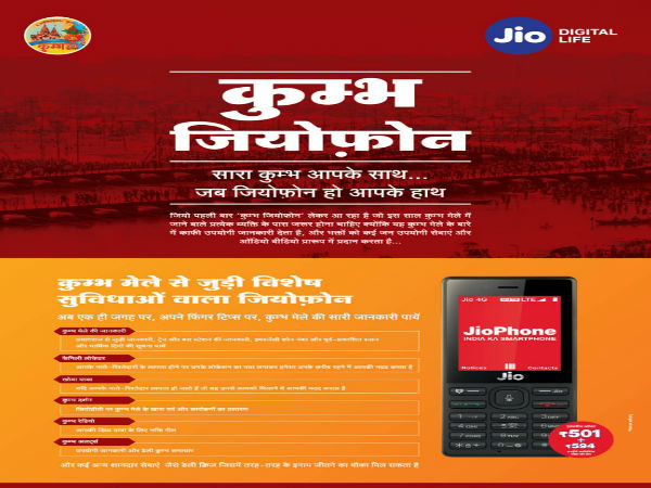 कुंभ 2019 के लिए जियो ने लॉन्च किया खास Kumbh Jio Phone, मिलेगा खास फीचर्स, सर्विसेज के साथ बहुत कुछ