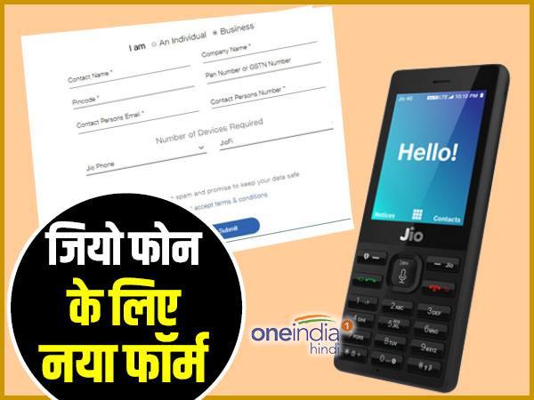 रिलायंस जियो के इस नए फॉर्म में आपको अपना नाम, कंपनी का नाम, पिन कोड, पैन नंबर या जीएसटीएन नंबर, ईमेल आईडी और अपना मोबाइल नंबर भरना होगा। इसमें आपको यह भी बताना होगा कि आपको लगभग कितने जियो फोन चाहिए। साथ ही अगर आप जियो फाई लेना चाहते हैं तो उसके लिए भी इस फॉर्म में विकल्प है। आपको बस इतना चुनना होगा कि आपको कितने जियो फाई चाहिए। इस फॉर्म के लिए आप यहां क्लिक भी कर सकते हैं।