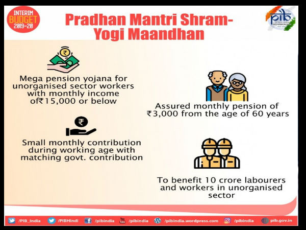 नई दिल्ली। 1 फरवरी को वित्त मंत्री पीयूष गोयल ने लोकसभा में अंतरिम बजट पेश किया। इस बजट में कई बड़ी घोषणाएं की गई। इन घोषणाओं में से एक थी पेंशन स्कीम। इस पेंशन स्कीम में असंगठित वर्ग के मजदूर वर्ग के लोगों के लिए भी एक खास पेंशन योजना का ऐलान किया गया। इस योजना से जुड़ने वाले लाभार्थियों को 60 वर्ष की आयु के बाद 3,000 रुपए मासिक पेंशन मिलेगी। मोदी सरकार ने प्रधानमंत्री श्रम योगी मानधन योजना (Pradhan Mantri Shram Yogi Mandhan Yojana) की शुरुआत कर असंगठित क्षेत्र के मजदूरों के भविष्य को सुरक्षित बनाने की पहल की है। इस योजना से जुड़े लोगों को 60 साल के बाद 3000 रुपए मासिक पेंशन स्कीम का लाभ मिलेगा। इस योजना से जुड़ने के लिए कुछ शर्तें और नियम जारी किए गए हैं। हम आपको इन नियमों के बारे में विस्तार से बता रहे हैं....