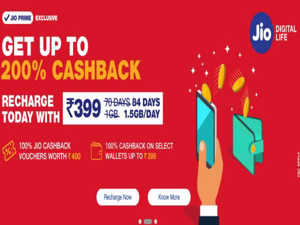 Jio का एक और बंपर ऑफर, 399 रुपये के रिचार्ज पर मिलेगा 200% कैशबैक