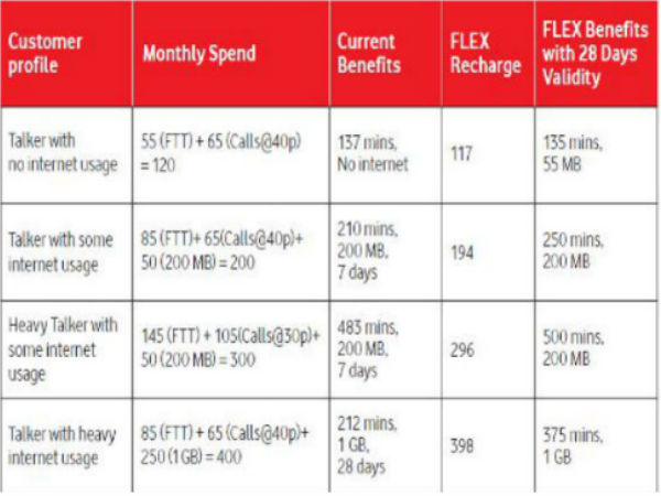 वोडोफोन के इस नए फ्लैक्स प्लान में ग्राहकों को अलग-अलग रिचार्ज कराने की जरुरत नहीं है। यानी कि अगर आप फ्लैक्स प्लान चुनते हैं तो आपको एक ही रिचार्ज से इंटरनेंट, वॉयस कॉलिग, एसएमएस, रोमिंग जैसी तमाम सुविधाएं मिल जाएगी। इस प्लान से वोडोफोन के प्रीपेड ग्राहकों को अलग-अलग रिचार्ज कराने के झंझट से मुक्ति मिल जाएगी। 3G फोन में इस्तेमाल कर पाएंगे रिलायंस जियो सिम, बस करना होगा ये काम