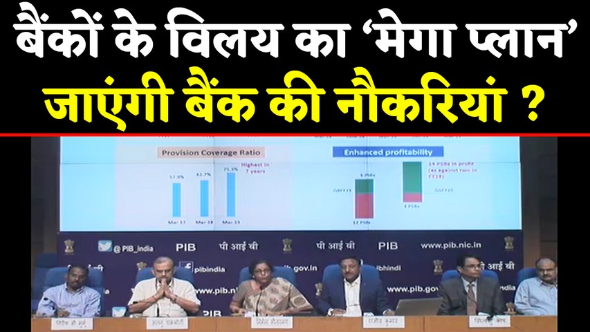 नई दिल्ली- केंद्र सरकार ने सरकारी क्षेत्र के बैंकों के विलय की बहुत बड़ी घोषणा की है। मोदी सरकार की ओर से इसे बड़े बैंकिंग रिफॉर्म्स के तौर पर पेश किया जा रहा है। देश की इकोनॉमी को दूसरी बड़ी बूस्टर डोज देते हुए वित्त मंत्री ने शुक्रवार को सार्वजनिक क्षेत्र के 10 बैंकों को 4 बड़े बैंकों में विलय करने का ऐलान किया है। लेकिन, इसके साथ ही कुछ लोगों ने सरकार के इस फैसले से बड़े पैमाने पर सार्वजनिक क्षेत्र के बैंकों से नौकरियों के जाने की आशंका भी जतानी शुरू कर दी है।