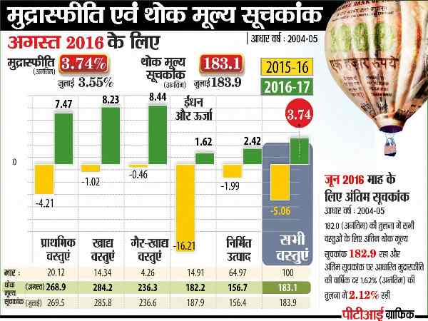 नई दिल्ली। महंगाई पर लगाम लगाने का दम भरने वाली मोदी सरकार को थोक महंगाई के आंकड़ों ने एक और झटका दिया है। इस बार थोक महंगाई दर पिछले दो साल में सबसे अधिक हो गई है। जुलाई महीने में जो महंगाई दर 3.55 फीसदी थी, वह अगस्त महीने में बढ़कर 3.74 फीसदी हो गई है।