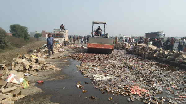 बिहार के छपरा जिले में हुए शराब कांड के बाद भी अंतरराज्यीय शराब तस्कर सुधरने का नाम नहीं ले रहे हैं। उत्तर प्रदेश के रास्ते जानी वाली हरयाणा की अवैध शराब आए दिन यूपी के किसी न किसी चेकपोस्ट पर पकड़ी जाती रही है। इसी के चलते आज न्यायलय ने इस मामले पर कड़ा रुक करते हुए पकड़ी गई अवैध शराब को नष्ट करने के आदेश दे दिए। जिसके बाद करीब 58 लाख कीमत की देसी व विदेशी शराब को रोड पर रख कर उसपे रोड रोलर चला दिया गया।