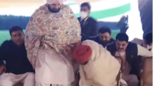 Punjab Elections: मुख्यमंत्री उम्मीदवार बनाए जाने के बाद चरणजीत सिंह चन्नी ने छुए सिद्धू के पैर, जनता को दिया