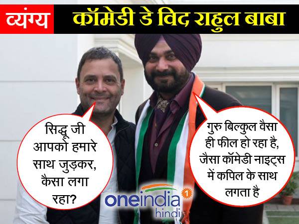 सिद्धू- राहुल बाबा, घबराओं नहीं मैं आ गया हूं तो सब ठीक कर दूंगा। मैं इतना बोलता हूं कि किसी की जरूरत ही नहीं पड़ेगी सबको देख लूंगा, मोदी हो या केजरीवाल। आप फिक्र ना करो। वैसे आपको देख कर शेर याद आता है..