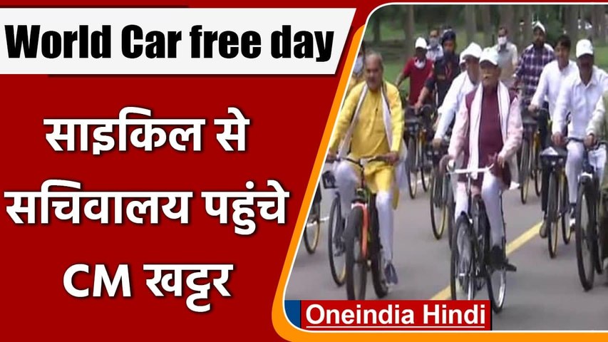 ‘वर्ल्ड कार फ्री डे' आज: साइकिल से सचिवालय पहुंचे हरियाणा के CM खट्टर और उनके मंत्री, देखें वीडियो
