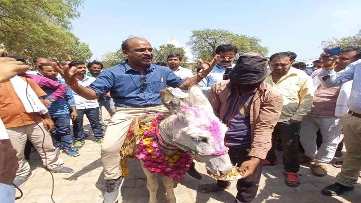 Chhatarpur: 'गधे' पर बैठने के शौकीन नेताजी धरे गए, पुलिस ने ठोका मुकदमा