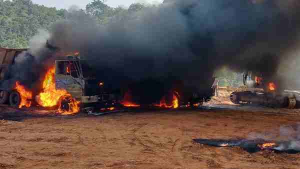 छत्तीसगढ़: दंतेवाड़ा में नक्सलियों ने डंपर और जेसीबी सहित 9 वाहनों में लगाई आग