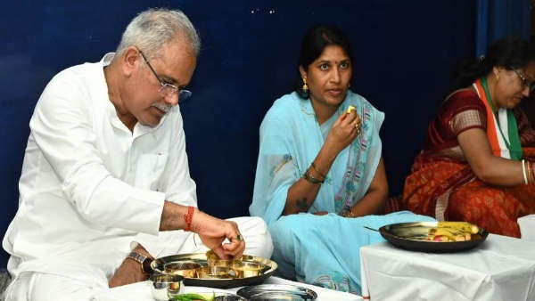 Chhattisgarh CM Bhupesh Baghel: मुख्यमंत्री भूपेश बघेल ने विधायक कुलदीप जुनेजा और महापौर एजाज ढेबर के साथ सोनी परिवार के सदस्यों द्वारा सादगी से परोसे गए खालिस छत्तीसगढ़ी भोजन का आनंद लिया।