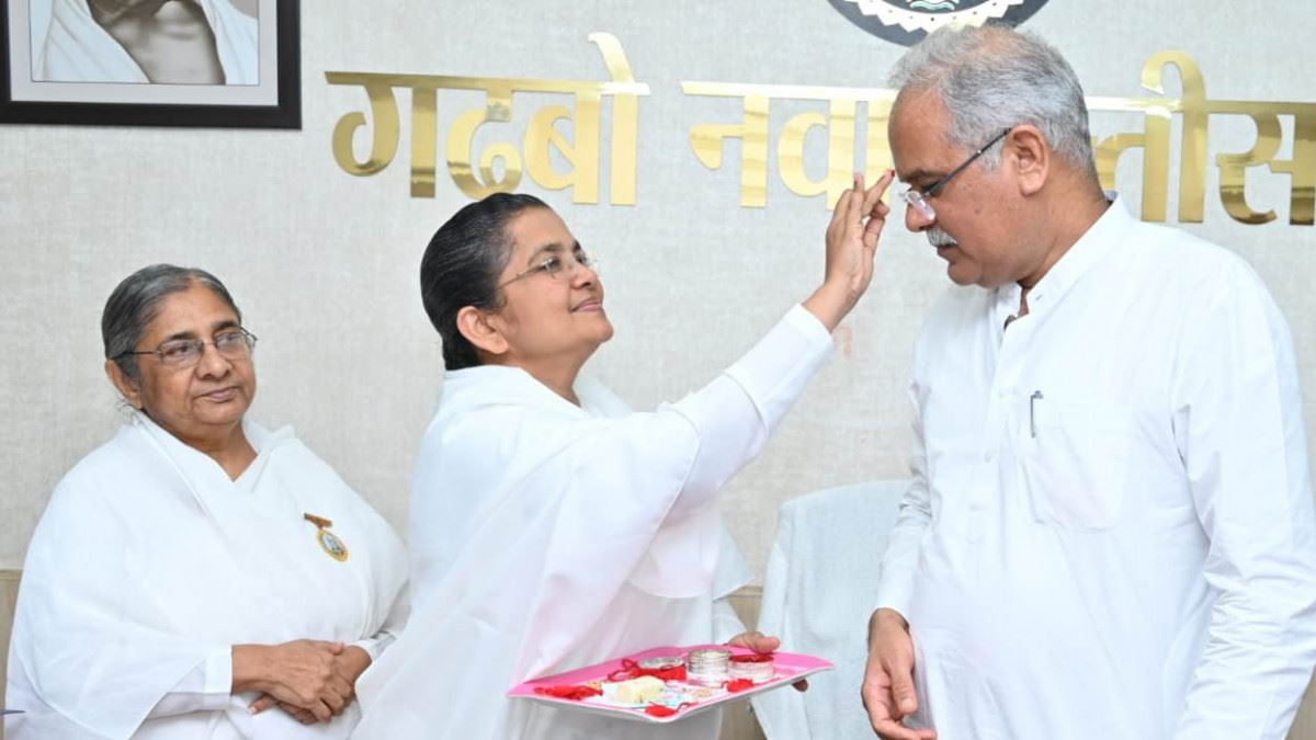 मुख्यमंत्री बघेल ने इस स्नेह और सम्मान के लिए ब्रह्मकुमारी दीदीयों का आभार प्रकट किया। ब्रह्मकुमारी बहनों ने इस अवसर पर मुख्यमंत्री को मिष्ठान भेंट कर प्रजापिता ब्रह्मकुमारी ईश्वरीय विश्वविद्यालय के मुख्यालय माउण्ट आबू में आयोजित होने वाले कार्यक्रम का निमंत्रण भी दिया। मुख्यमंत्री ने ब्रह्मकुमारी दीदीयों को उपहार भी भेंट किए। इस अवसर पर ब्रह्मकुमार महेश भाई और हिरन भाई भी उपस्थित थे।