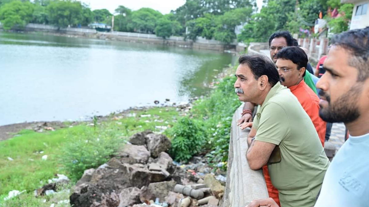 राजेश मूणत ने नगर निगम आयुक्त अबिनाश मिश्रा, रायपुर स्मार्ट सिटी लिमिटेड के सीओओ उज्जवल पोरवार, पार्षद अमर बंसल ,निगम अपर आयुक्त विनोद पाण्डेय, एसडी एम नन्दकुमार चौबे, जोन 7 जोन कमिश्नर जसदेव सिंह बाबरा सहित नगर निगम और रायपुर स्मार्ट सिटी लिमिटेड के सम्बंधित अधिकारियों सहित क़र्बला तालाब का निरीक्षण किया।