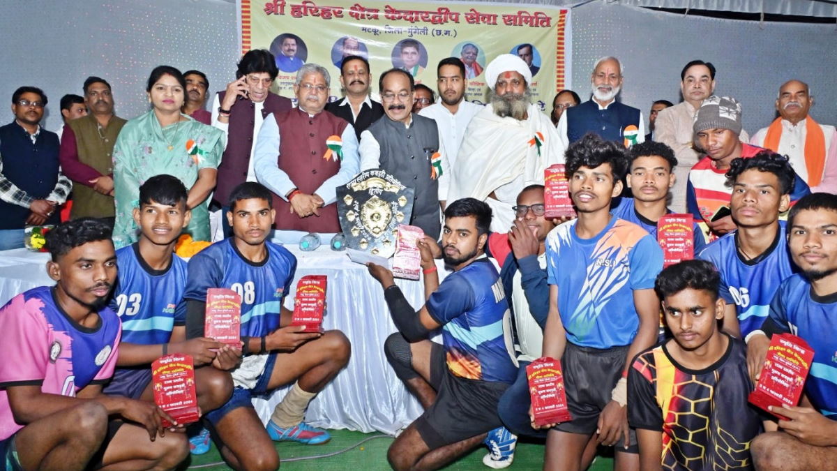 उप मुख्यमंत्री अरूण साव ने मद्कूद्वीप में कबड्डी प्रतियोगिता के विजेता टीमों को पुरस्कृत किया। उन्होंने खिलाड़ियों को शील्ड एवं स्मृति चिन्ह प्रदान कर उनका हौसला बढ़ाया। प्रतियोगिता की विजेता टीम को 15 हजार रुपए और उप विजेता टीम को 11 हजार रुपए प्रदान किए गए। तीसरे और चौथे स्थान पर रहने वाली टीम को क्रमशः 5100 रुपए और 3100 रुपए का पुरस्कार दिया गया। साव ने प्रतियोगिता के सफल आयोजन के लिए आयोजक समिति को बधाई एवं शुभकामनाएं दीं। पूर्व विधानसभा अध्यक्ष एवं बिल्हा के विधायक धरमलाल कौशिक और मुंगेली जिला पंचायत की सदस्य अम्बालिका साहू सहित स्थानीय जनप्रतिनिधि, आयोजन समिति के पदाधिकारी एवं सदस्य तथा बड़ी संख्या में कबड्डी प्रेमी भी कार्यक्रम में मौजूद थे।