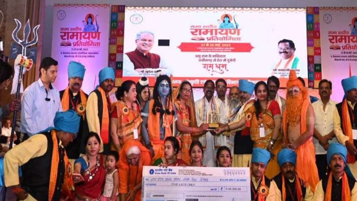 मंत्री अमरजीत भगत ने राज्य स्तरीय रामायण प्रतियोगिता के समापन अवसर पर विजेता रामायण मंडलियों को पुरस्कृत किया। उन्होंने प्रतियोगिता में प्रथम स्थान प्राप्त करने मंडली को पांच लाख रूपए, द्वितीय स्थान वाली मंडली को तीन लाख रूपए और तृतीय स्थान प्राप्त करने वाली मंडली को दो लाख रूपए की राशि का चेक, प्रमाण पत्र एवं स्मृति चिन्ह प्रदान किया। प्रतियोगिता में प्रदेश के सभी 33 जिलों के प्रतिभागियों ने हिस्सा लिया है। समापन दिवस पर आज कांकेर, कोण्डागांव, नारायणपुर, बस्तर, दंतेवाड़ा, सुकमा और बीजापुर जिले के प्रतिभागियों ने रामायण प्रतियोगिता अपना प्रदर्शन किया।